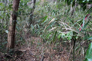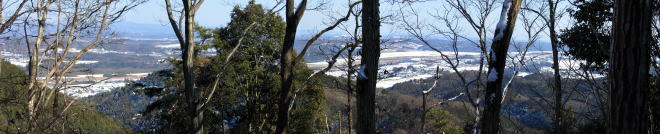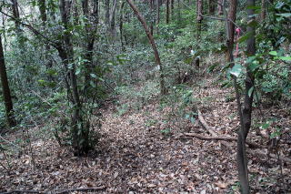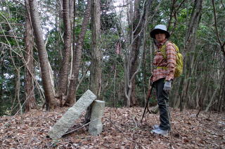 | 2026年03月15日のお山めぐりは再訪の赤沢富士から初登のかご山、そして再訪の白山です。 「道の駅かつら」奥の駐車場から10時04分に出発、国道を左へ、すぐに右に入ります。左からの舗装路を合わせて右奥へ、舗装の赤沢林道は植林帯に入って行きます。橋を渡って伏流の沢の右岸を進み、カタクリイチリンソウ再生試験地の説明板を過ぎて左側に赤沢富士登山口の案内板を見て左上に登ります。 駐車場は広大 赤沢富士登山口 ![]() 後に知る「痩せ尾根コース」の名のとおり、道は細尾根に付いた急登から始まり、小さなアップダウンの登りが続きます。尾根の左に幅広林道に出て赤沢富士に直登する尾根に付いた踏み跡の急登ですが、妙に踏み方が少なかった。山頂と思ったベンチのある赤沢富士の肩で右下からの登山道が正解だったのでしょう。 ベンチ前は伐採されて窓が開き、那須方面が目に入りました。左奥に進んで緩い登りで左が開けた赤沢富士の山頂で展望をデジカメに収めます。 赤沢富士の山頂へ 山頂にて ![]() 赤沢富士の展望 ![]() 2006年の展望 ![]() 撤収して南進、あらあら左が開けており、テーブルベンチも3基設置されていました。11時30分過ぎでランチ休憩です。 再び左が開けて 展望を肴にランチ休憩 ![]() 撤収して南に下ります。南西から南南東に方向を変え、次のかご山への分岐を探しますが、案内板は見当たらず通り過ぎてしまったようです。GPSを出して戻る途中で「白山神社:赤沢富士山桜群生地」の板の所で西側にごくごく薄く踏み跡が斜めに下っているようで、先にピンクテープが目に入りました。 左下に道型が来ており、門構えのように2本の細木に赤テ―プが巻かれていました。右に進んで行くと尾根形が現れ、道型は左に向かっています。少し薮化している所もありますが迷うほどでもなく、尾根上を直進です。最初のピークで左に進んで倒木に額を当ててしばし悶絶、戻って右を見れば赤ビニテが誘っていました。 ここから下る ピンクテープは右の木に ![]() 右にゆるく下ってトラバース、左上に登り返して北西支尾根を越えて左に回り込み、主尾根に復帰、次のピークはそのまま超えて250m級ピークでしばし考慮、破線はピークを越えていますが薮、左の参考ページでいう展望台で状況によりPさんを待たせ、しぼれだけ「かご山」往復ということで左の明瞭な道を選択です。 落ち葉を分けながら進んだ先の展望台はナイススペース、左下は立ち入り禁止ですが、奥に道型が進んでいました。 小藪 展望台 ![]() ときどき出てくる赤テープ、左に下る250m級ピークからの支尾根に沿って左に進む道型は支尾根を横断して右に進んでおり、東西主尾根に出て「かご山・250m級ピークの鞍部に出ました。 薄くなった踏み跡はここで消失、小藪の尾根上を西進、道なし斜面の急登です。適当に薮なし斜面を選び、登り切ると石標ひとつの東端のピークでした。少し下り気味になって右から登ってくる往時の植林作業道か、ヒノキの幼苗が少々うるさい。13時03分石標2か所の「かご山」山頂に到着でした。 手前の肩と標石 中央のピークにて ![]() 山頂の東・北・西南西と囲むように道型が入っていました。北に進んで破線路を辿ることも考えましたが、往路を忠実に戻ることにしました。展望台で小休止、おやつを入れて撤収です。 登山道に復帰して右の白山神社方面です。少しの登りから下りになって鞍部で右に分岐する道型を見送って登り返しで「異種合体木」、右に下って道型と合流します。次の鞍部は「夫婦三頭杉」、その奥に「白山螺旋杉」ですが、右の「大桐」はパス、「長寿夫婦桜」のピークを通過、2度目の白山(213m)の白山神社でした。 なるほどねじれている おっと裏口から ![]() 東進して山倉神社への板を見て踵を返し、北に下る参道を選びます。記憶のなくなった参道からの展望、金精神社・駒形神社などの小さなお社群を見て鳥居をくぐって登山は終了、集落の中を左へ進み、幹線道路歩きをできるだけなくして駐車場には15時08分の到着でした。 駐車場(0:14)痩せ尾根コース登山口(0:59)赤沢富士(0:07)分岐(0:24)展望台(0:25)かご山(0:22)展望台(0:17)分岐(0:32)白山(0:36)駐車場 所要時間は5時間04分(歩行3時間56分)、展望・展望・展望・小藪・展望・小藪、そして狛犬さんなしの周遊ピークハントでした。 参考 国土地理院電子地形図「」 ホームページ「たそがら山歩」様の城里町の山歩2 2024.1.8「赤沢富士から堂平・白山」 2024.3.4「堂平から住谷山・こまねぎ峠」 赤沢富士は2006年01月22日で20年ぶりでした。登路は記憶にありませんが伐開中の痩せ尾根コースだったか?白山麓のかたくりの里もあり、らくらくコースで再訪しようかと思います。 参考ページを再度読み直してみました。かご山の最高点は南西端だったようですが、山体の中心部まで行ったということで標題はそのままとしておきます。いずれ機会があれば再訪しましょう。 |